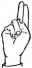 На ћирилици написано НЕБОЈША КОЈОВИЋ састоји се из 14 слова [?]. Исписано ћириличном једноручном азбуком за глувонеме: